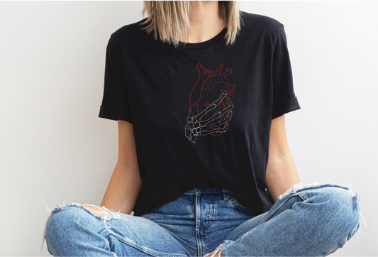 Skeleton hand grabbing Heart Unisex Jersey Short Sleeve Tee